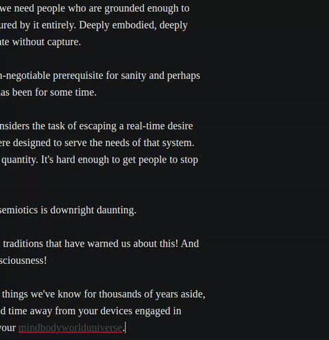 At risk of hyperbole, groundedness is a non-negotiable prerequisite for sanity and perhaps any agency at all in the coming deluge. It has been for some time.